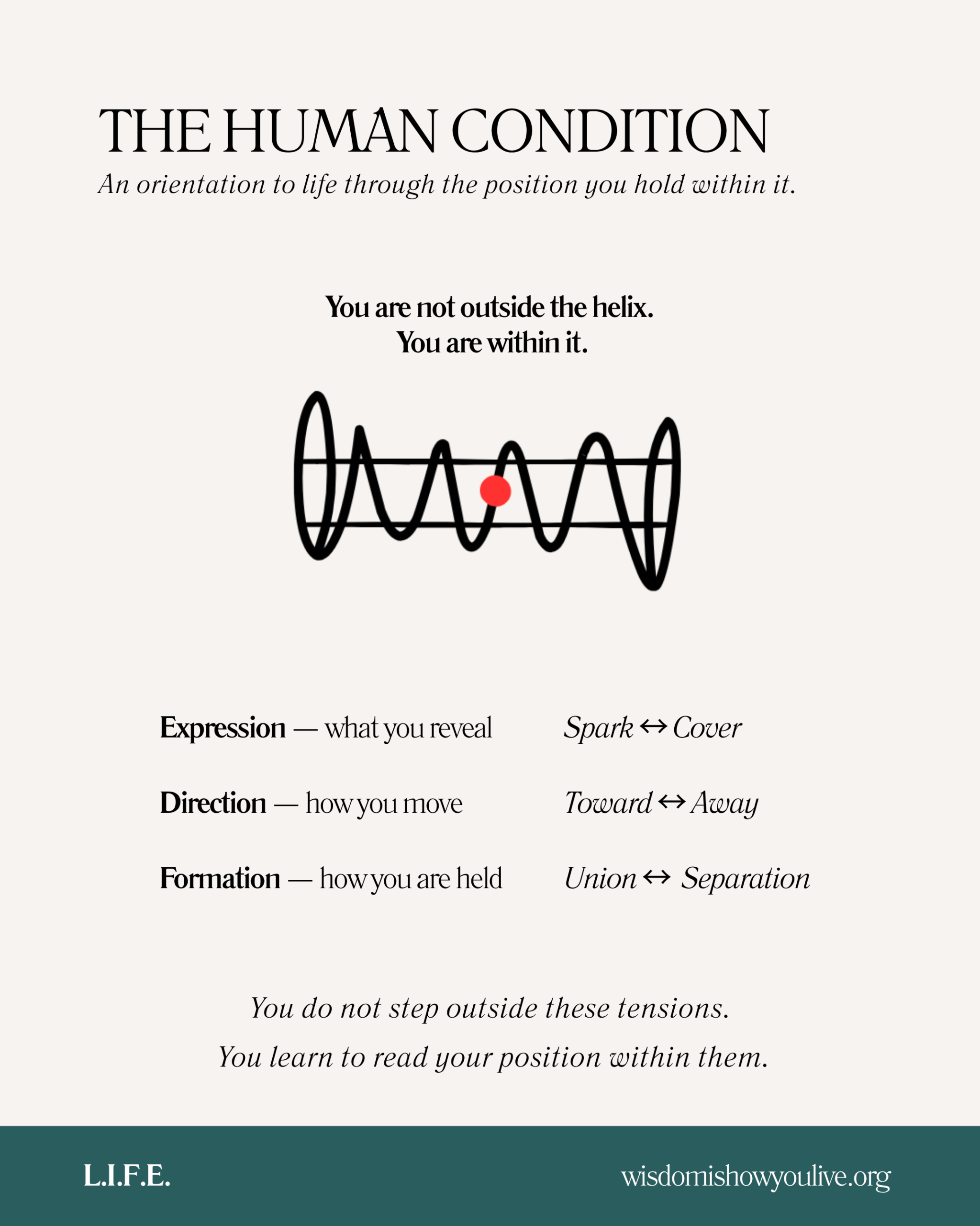 Slower entry. The human lived POV — grace, presence, spark. Follow what draws you. Leave and return as needed.